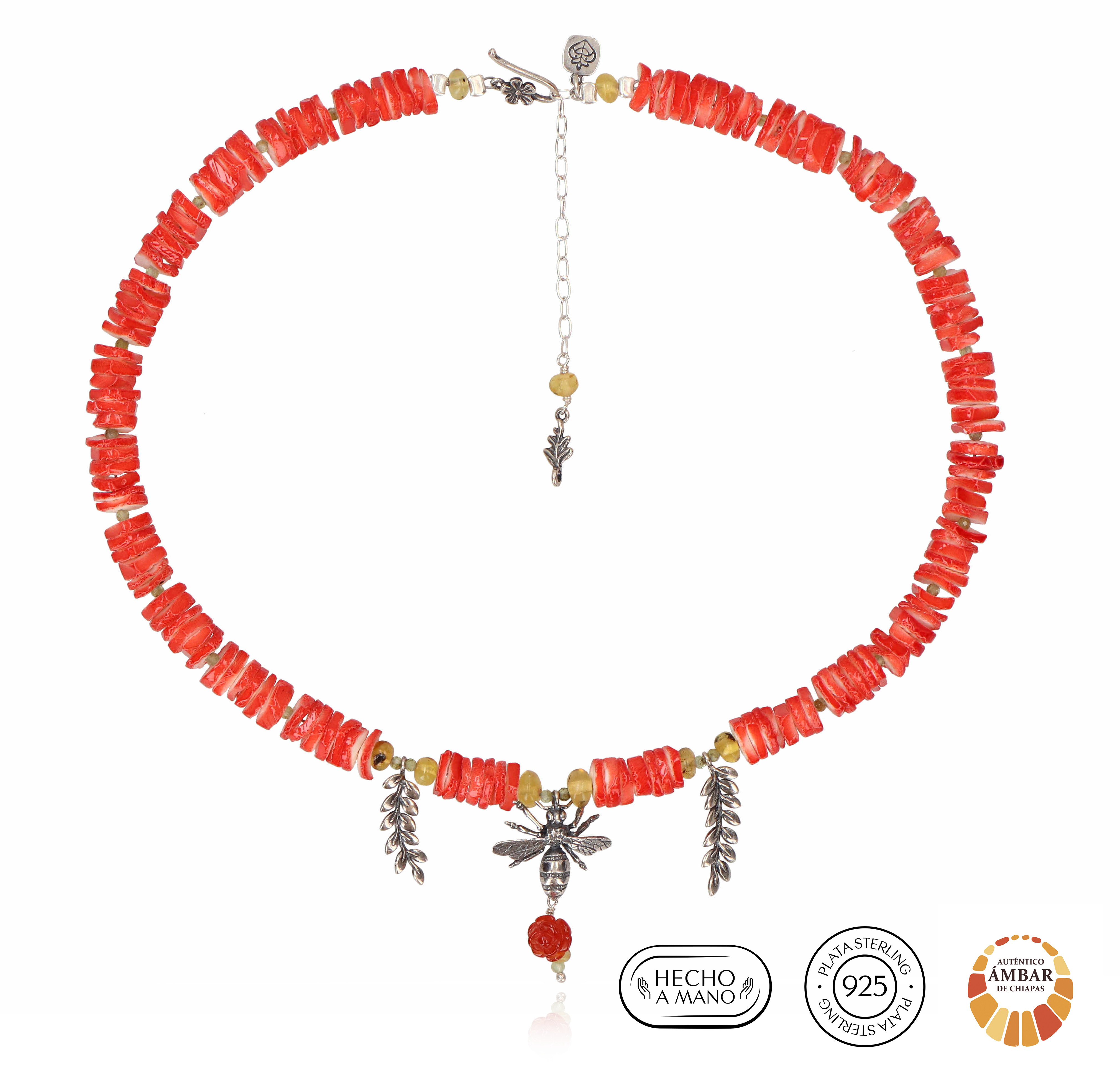Piedras: Rojo: Coral, Amarillo: Ámbar.
