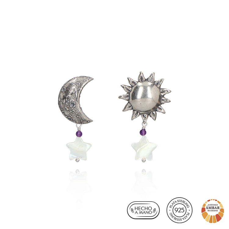 Estos aretes nos recuerdan que somos totalidad: luz y sombra, fuerza y suavidad, día y noche. Al portarlos, equilibras tu energía, recordando que cada faceta de ti tiene un propósito divino y ambas sostienen tu brillo interior.