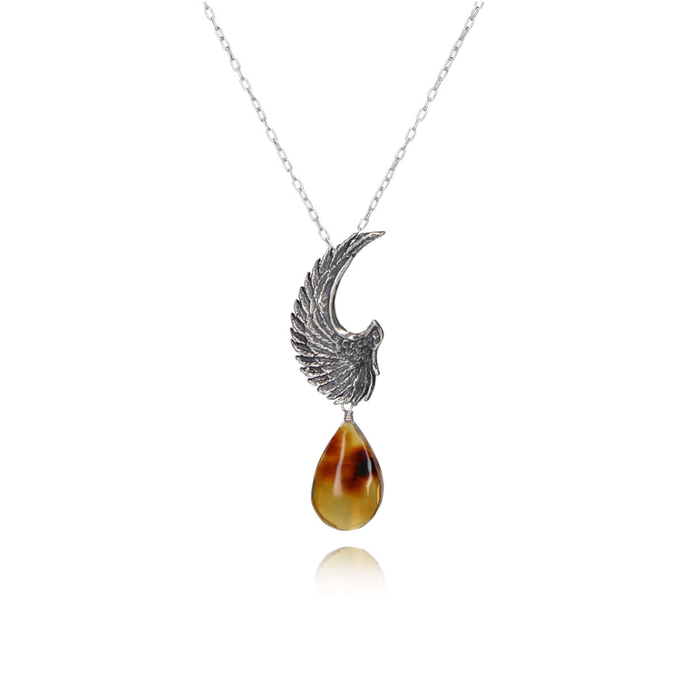 Esta gargantilla de cadena larga es una joya artesanal para mujer elaborada con plata ley .925 con medidas cadena 49 cm, dije 5 cm Largo. con piedra de ámbar al tratarse de una piedra contenedora de vida nos ayuda a contactar con el pasado y, por lo tanto, con las vidas pasadas, para poder aprender de ellas y seguir nuestro camino en el día a día.