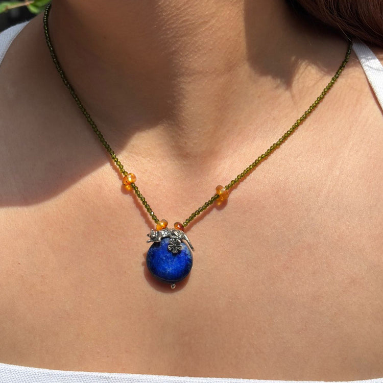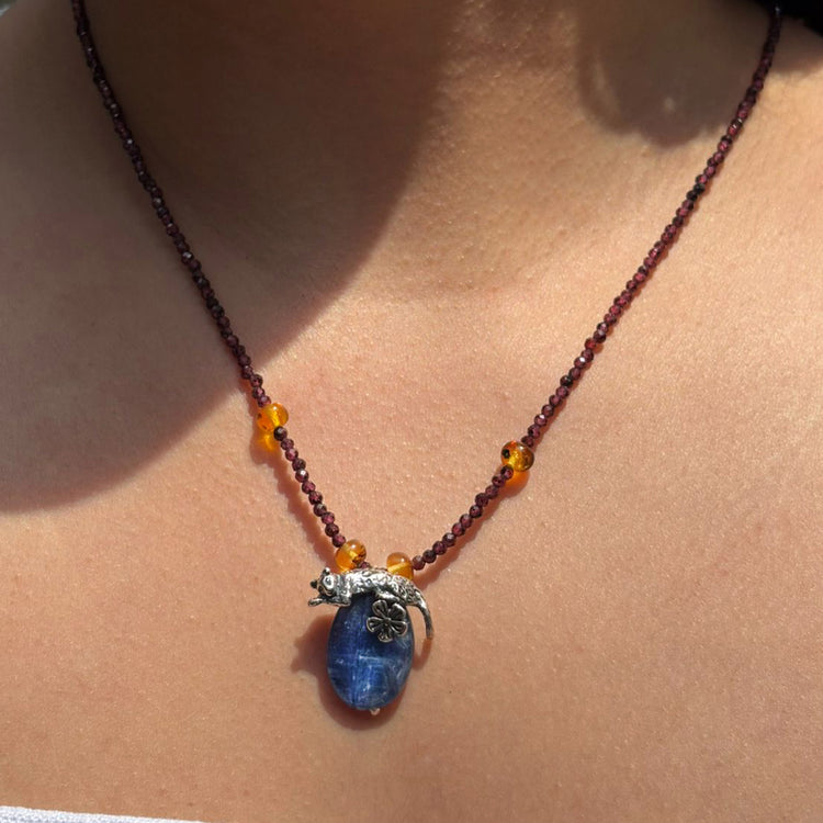 Jaguar Balam en plata .925 sobre piedra natural; talismán de protección y visión clara, energía serena para decisiones con propósito, conexión con la milpa y con los ciclos nocturnos.