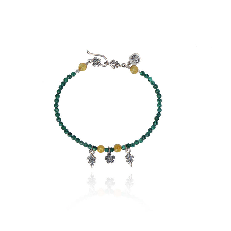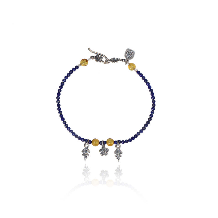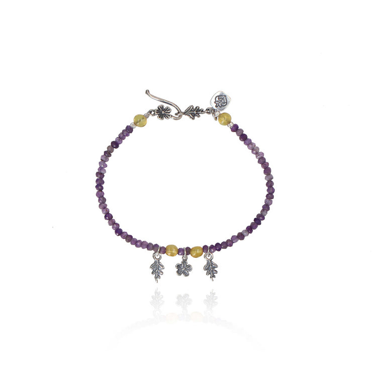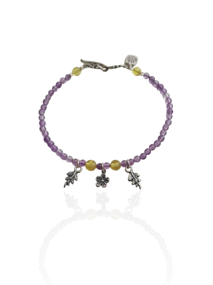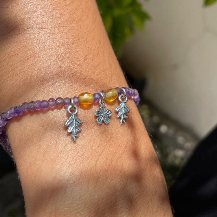 Esta pulsera combina la serenidad de la amatista con la energía cálida del ámbar, creando un equilibrio perfecto entre la paz interior y vitalidad, esta pieza es ideal para quienes buscan mantener la calma en medio de los desafíos y sentirse en sintonía con su propio ser.