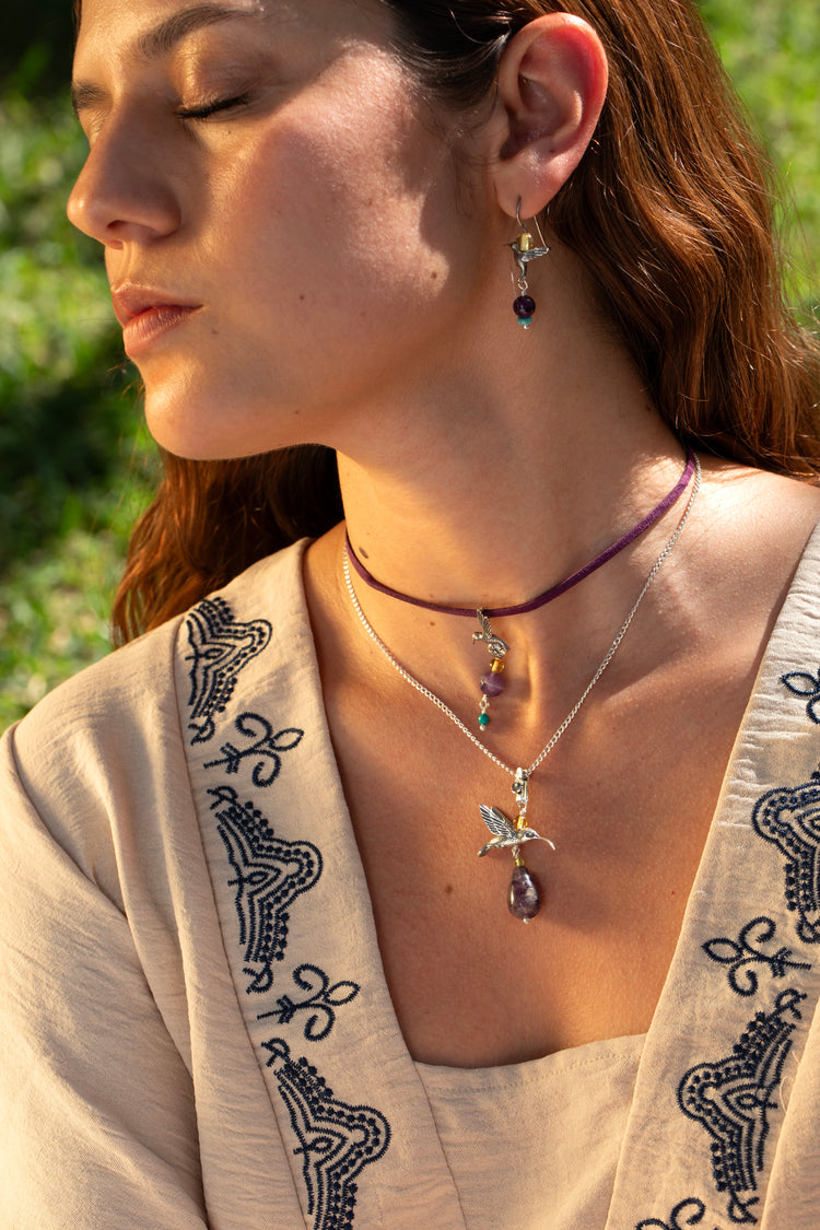 Desde hace 30 años trabajamos con Plata Sterling de .925 y una gran variedad de piedras naturales de todo el mundo, siendo pioneras en el uso de ámbar en joyería. Cada joya es trabajada por un equipo de mujeres, verdaderas arteanas que aportan su creatividad y conocimietno.
