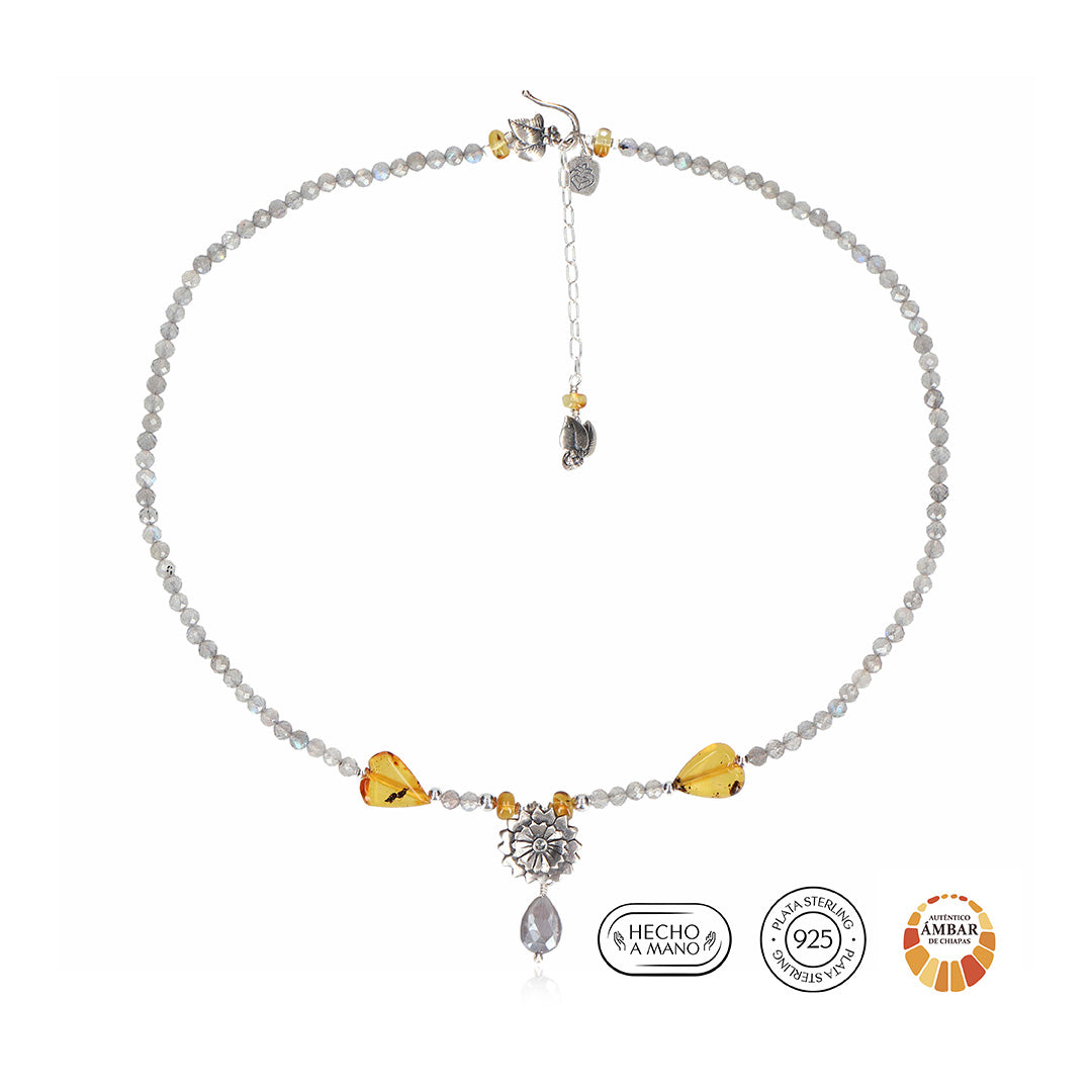Piedras: Gris: Labradorita, Amarillo: Ámbar.