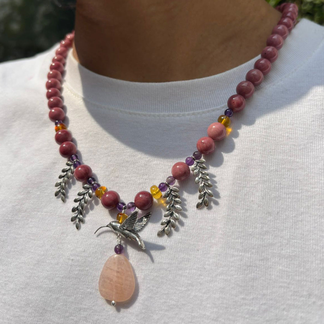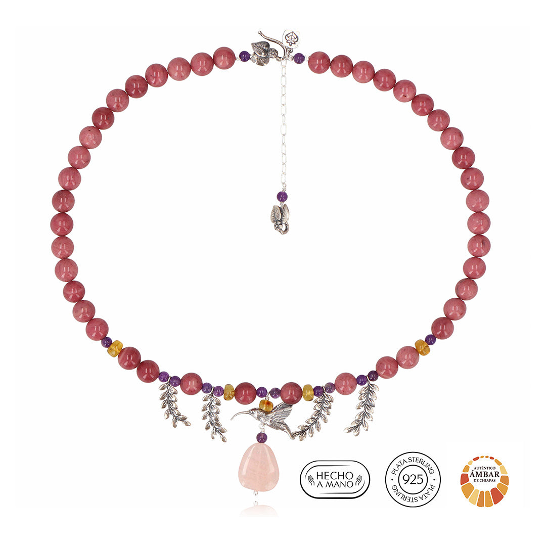 Collar Colibríes y Flores