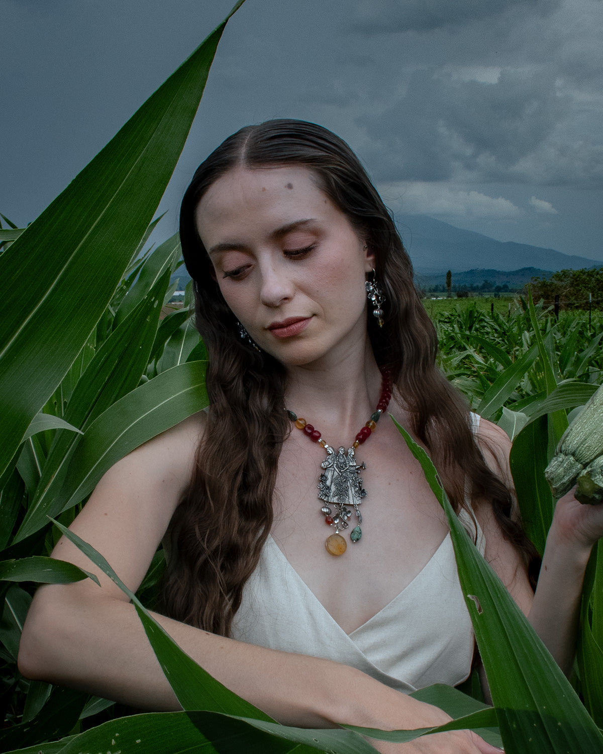 Como la milpa, esta colección es el resultado del trabajo colectivo: la suma de manos, voces, ciclos, cuidados. Es herencia viva y presente consciente. Aquí, cada joya es un tributo a quienes siembran en red, a las que cultivan tiempo, memoria y vínculo.