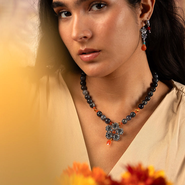 Estos artetes honra el vuelo de las mariposas monarca que, como las almas en Día de Muertos, regresan guiadas por la luz del cempasúchil. La turquesa, piedra de protección y serenidad, simboliza ese puente sagrado entre lo terrenal y lo divino.