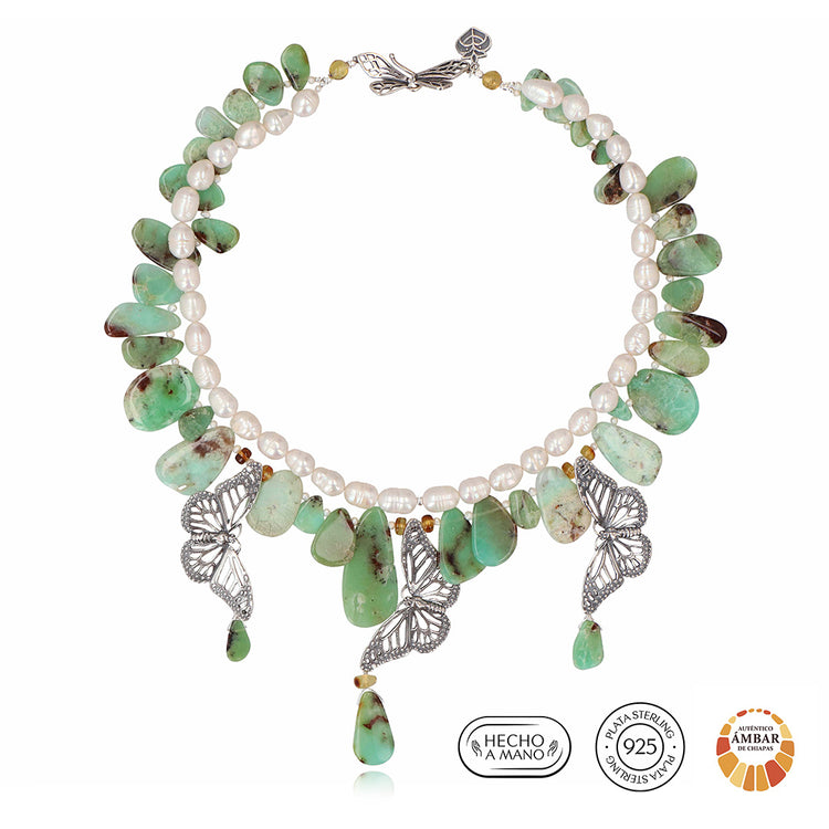 PIEDRAS: Blanco: Perla cultivada, Verde: Prehnita, Amarillo: Ámbar.