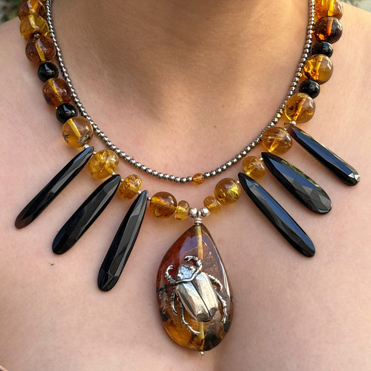 El ámbar ilumina incluso lo más profundo. Una pieza que equilibra sombra y luz, recordando tu poder interior.