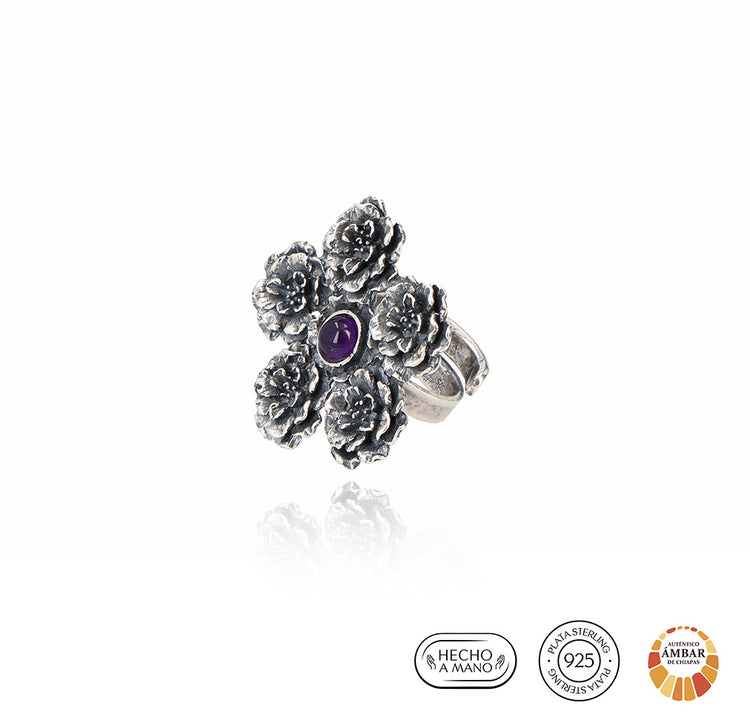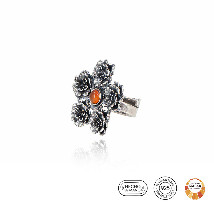 Este anillo simboliza la creencia de que los petalos de esta flor de cempasúchil guia a las almas de regreso a su hogar, para recordarte que siempre estaran vivos en tu corazón