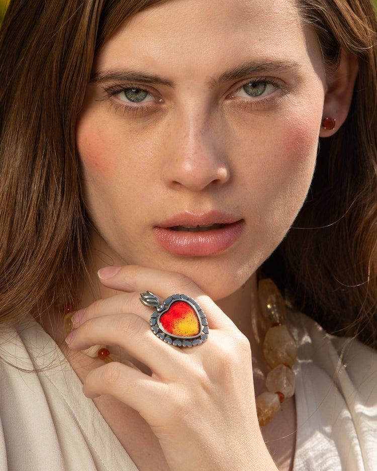This ring is a handmade jewel for women made with adjustable .925 sterling silver, with a pendant measuring 4 cm.
