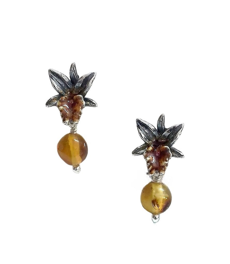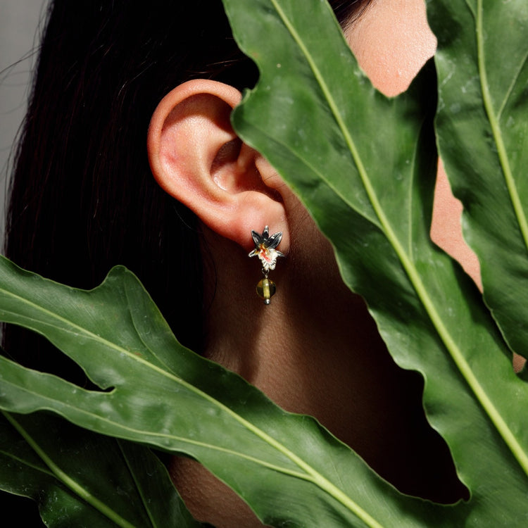 Dendrobium Orchid Enameled Earrings