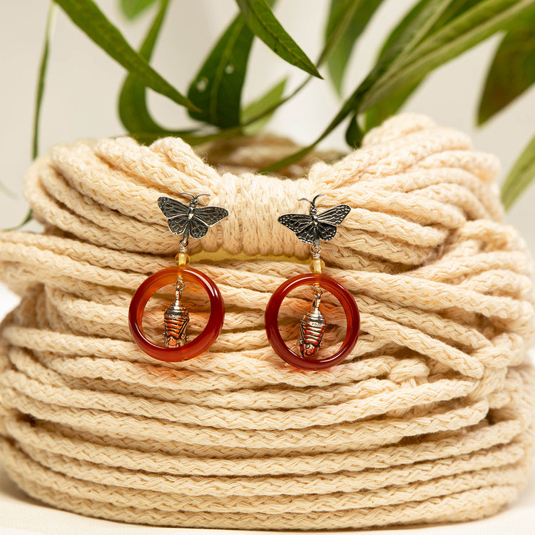 Monarch butterfly and cocoon earrings.