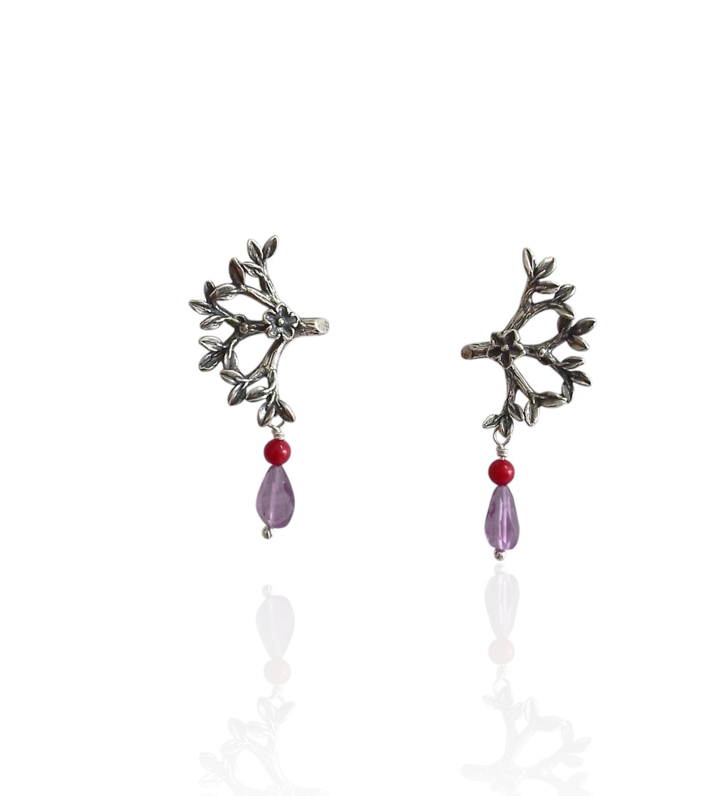 These earrings are a handmade jewel for women made with .925 sterling silver with measurements: 3 cm long. With amethyst stone that helps calm nerves, stress, fears,