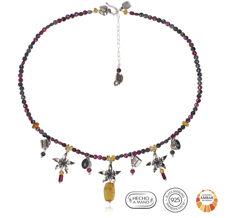 Piedras: Matriz de Rubí ,Amarillo: Ámbar.