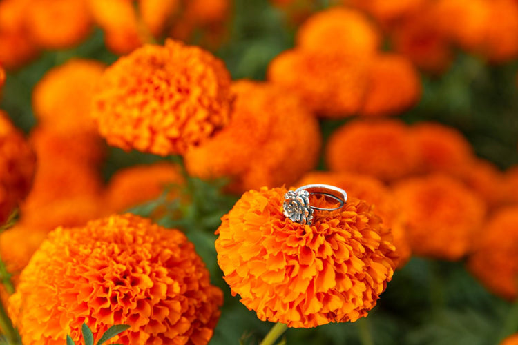 On the Day of the Dead, the cempasúchil lights up our paths and our hearts. Our jewelry inspired by this iconic flower brings its radiance wherever you go.