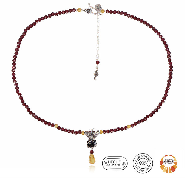 MEDIDAS: Largo 47 cm, Dije 3.5 cm, Extensión 5 cm Diseños hechos de plata mexicana .925. Usted está adquiriendo un producto natural, por lo que los colores y formas de las piedras y algunos materiales pueden variar, estos componentes de nuestras joyas están sujetos a disponibilidad. Agradecemos su comprensión. Las fotografías con piedras de otros colores o más de un artículo son meramente ilustrativas.