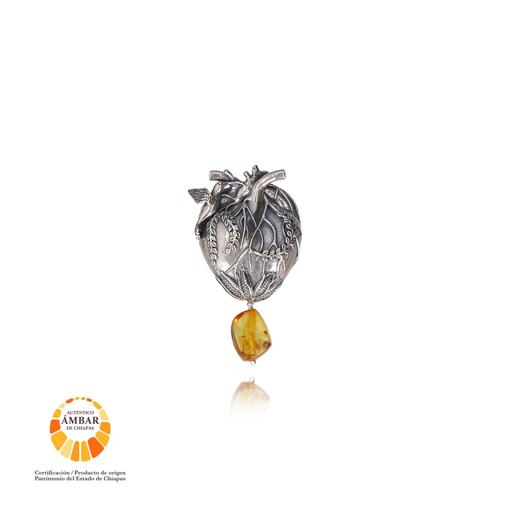 This pin is a handcrafted piece made with .925 sterling silver, complemented with an amber stone from Chiapas, the lucky bearer of an authentic piece.