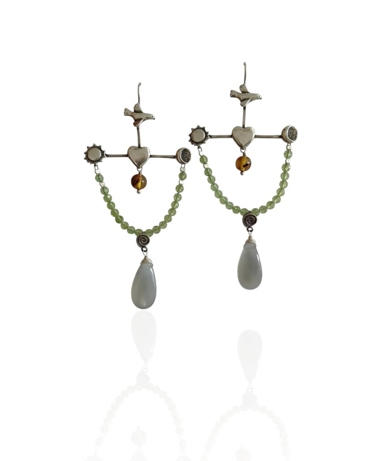 Designs made of .925 Mexican silver. Earrings with turquoise and amber.