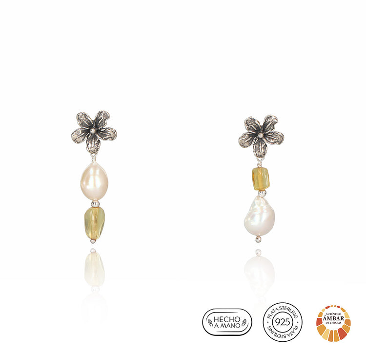 MEDIDAS: Largo 4,5 cm. Piedras: Amarillo: Ámbar, Blanca: Perla cultivada. Diseños hechos de plata mexicana .925. Usted está adquiriendo un producto natural, por lo que los colores y formas de las piedras y algunos materiales pueden variar, estos componentes de nuestras joyas están sujetos a disponibilidad. Agradecemos su comprensión. Las fotografías con piedras de otros colores o más de un artículo son meramente ilustrativas.