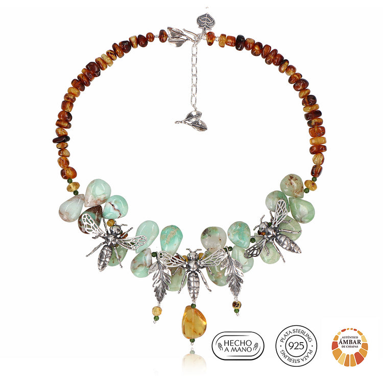 MEDIDAS: Largo 47 cm, Dije 6 cm, Extensión 5 cm. Piedras: Amarillo: Ámbar, Verde: Prehnita. Diseños hechos de plata mexicana .925. Usted está adquiriendo un producto natural, por lo que los colores y formas de las piedras y algunos materiales pueden variar, estos componentes de nuestras joyas están sujetos a disponibilidad. Agradecemos su comprensión. Las fotografías con piedras de otros colores o más de un artículo son meramente ilustrativas.