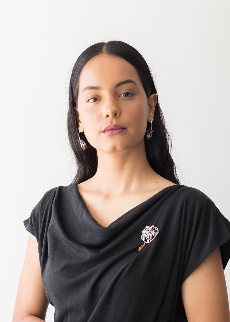 This pin is a handcrafted piece made with .925 sterling silver, complemented with an amber stone. As it is a stone that contains life, it helps us to contact the past and, therefore, with past lives, in order to learn from them and continue our path on a daily basis.