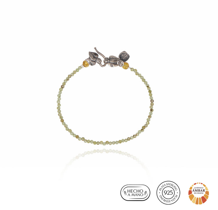 Mini stone bracelet and two leaf brooch