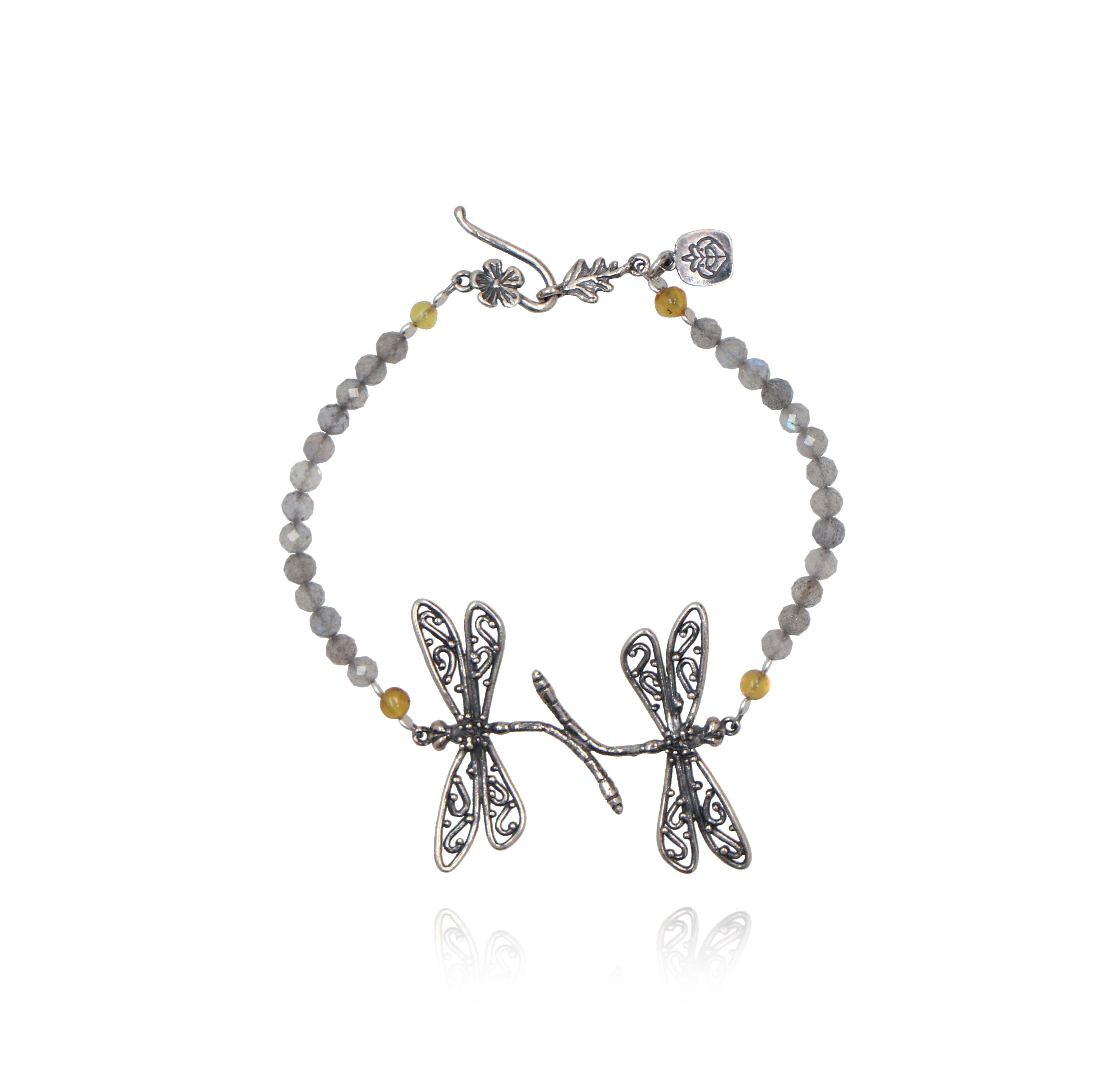 This bracelet is a handmade jewel for women made with .925 sterling silver, measuring 19 cm long and with labradorite and amber stones. It diverts the disturbing forces of our aura and creates a protective barrier that blocks negative energies. It can take you to another world or to other lives, since it is a very esoteric stone that facilitates initiation into the mysteries.