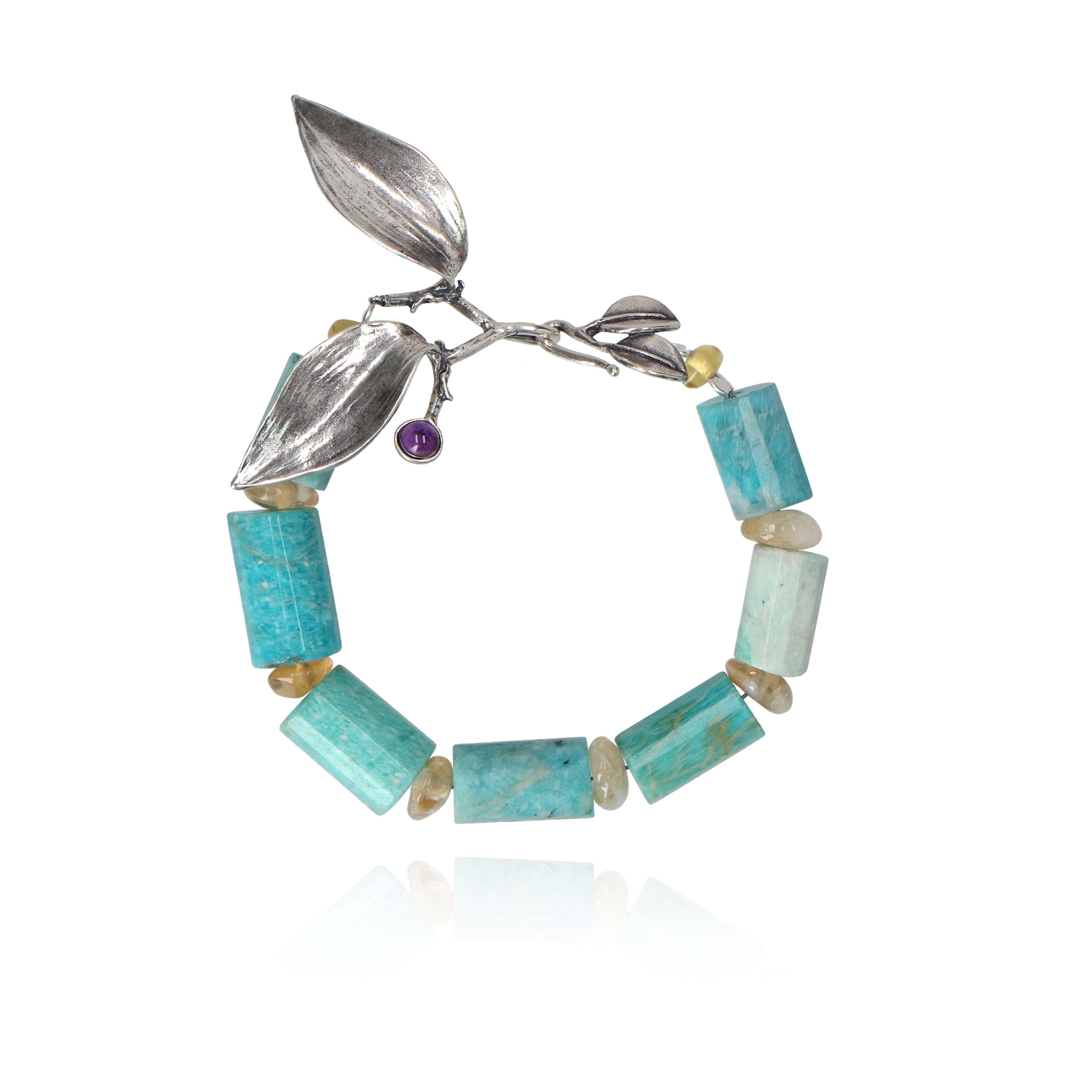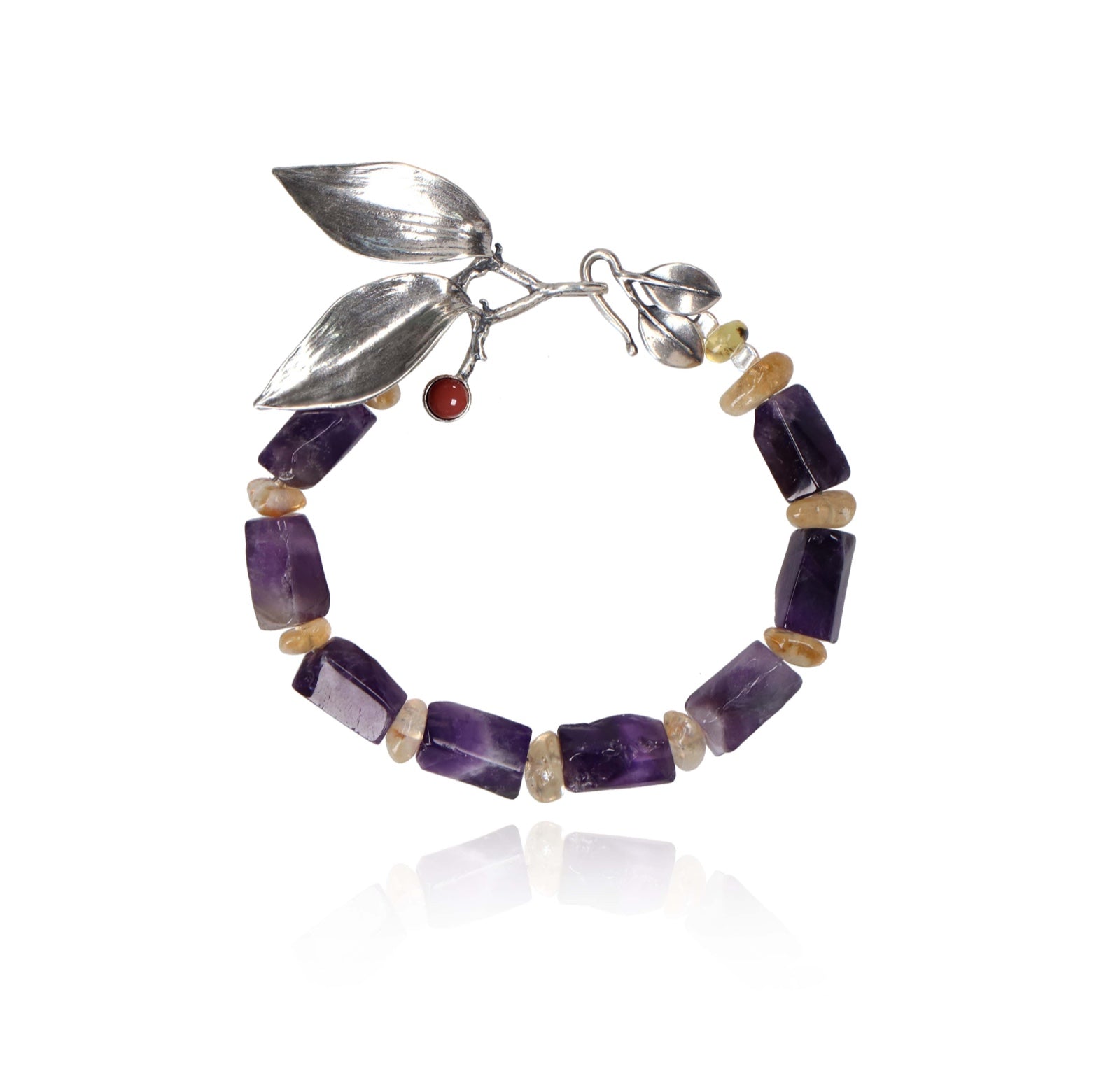 Piedras: Amarillo: Ámbar, Morado: Amatista, Azul: Amazonita.